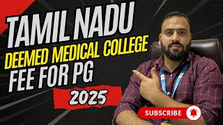 Tamil Nadu Deemed Medical College PG Fees 2025 | Complete Fee Structure explained | PG2025 Admission