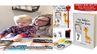 Baby Memory Book Journal Scrapbook 48 PackMilestones Stickers CleanTouch Safe Ink Pad Hand Footprint