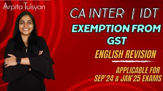 🚀 CA Final IDT Revision |GST Intro, Supply, Charge & Exemption | May'26 & Sept'26 |CA Arpita Tulsyan