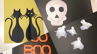 Halloween | Paper plate skull | Plastic bag ghost | Cat & BOO cutout | Classroom and home decoration