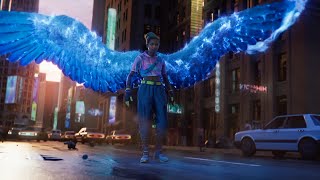 A delivery girl gets chased by robot fights a god and ends up in a video game race with a giant dude