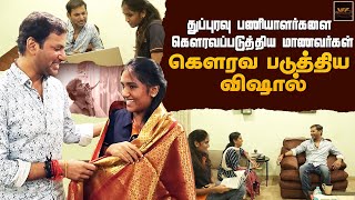 துப்புரவு பணியாளர்களை கௌரவப்படுத்திய மாணவிகள் கௌரவ படுத்திய விஷால் | Vishal Witnesses Magic on Walls