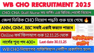 WB CHO Recruitment 2025 | District Wise CHO Vacancy 2025 | Wbhrb Staff Nurse Vacancy Howrah District