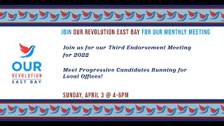 Bernie Sanders created Our Revolution to help more progressive candidates get elected. Our Revolution East Bay is determined to do that! Come join us: www.ourrevolutioneastbay.org/