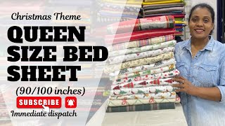 🎄 Christmas Theme Pure Cotton Queen Size Bed Sheet | 90x100 Inches | Premium Comfort & Festive Style