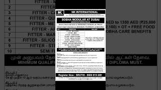 Dubai Job | Fitter & Semi Fitter Jobs | Salary 1050–1350 AED + Food | Interviews in Trichy & Madurai