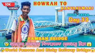Howrah To Kanyakumari 🇮🇳 Cycle Yatra 🚴| Day 33😍| World Famous And Risky Railway Bridge🔥Pamban Bridge