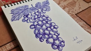 Mountains pen drawing/ cross hatching/ scenery pen art/ pen sketch/ ball point pen drawing/ blue pen