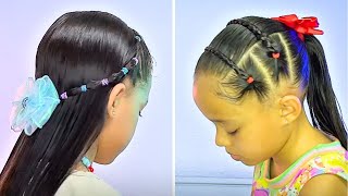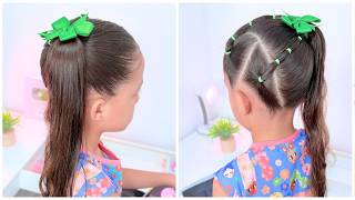 Beautiful half-up hairstyle! How to do a simple and easy children's hairstyle with elastics for p...
