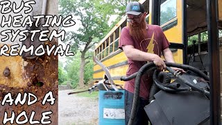 Removing plywood flooring Janky walls and Finding a rusty floor| School bus tiny home conversion EP5