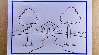 Beautiful Scenery House Drawing With Pencil | Ghar ka Chitra | House Drawing |Pencil Scenery Drawing
