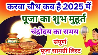 करवा चौथ कब है 2025 में | करवा चौथ पूजा सामग्री | Karva Chauth 2025 puja muhurt | चांद निकलने का समय
