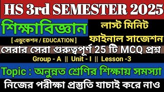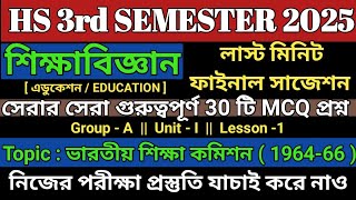 WBCHSE Class 12 Semester 3 Education Final Suggestion 2026 | HS Education Semester 3 Suggestion 2025