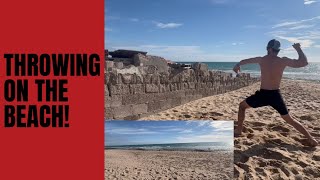 Throwing baseballs on the beach!