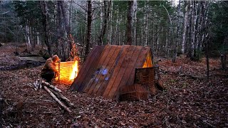 RUSTIC BUSHCRAFT CABIN - Building Stone Hearth & Table - Cozy Warm Camping - Beef Stew on Wood Stove