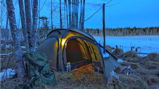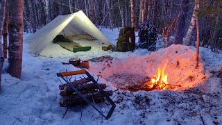 -26C FREEZING COLD SOLO WINTER CAMPING OVERNIGHTER, Super Shelter, Bushcraft, Off Grid Campfire Cook