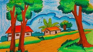 How To Draw a Natural Village Scenery Drawing _Very easy step by step drawing tutorial #art #drawing