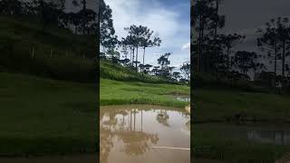 Rã camuflada entre filhotes de sapo e peixes em água cristalina da nascente. Você consegue ver? Já!!