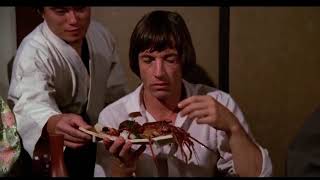 A young Dennis Hopper getting thrown across a room by Jack Palance in I Died a Thousand Times (1955)