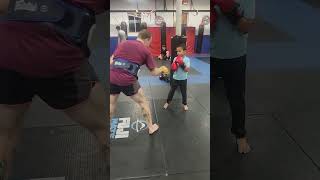 Isaiah hitting mitts with Muay Thai Coach Dave