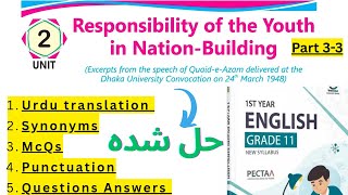1st Year| English | Unit 2|Responsibility of Youth in Nation Building|Translation,Synonyms,MCQs,All