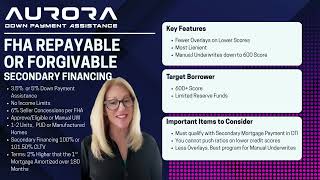 • FHA Down Payment Assistance down to 600 credit scores