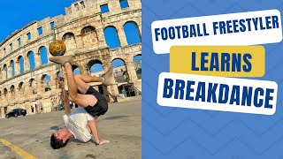 FOOTBALL FREESTYLER LEARNS BREAKDANCE