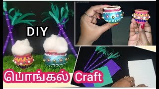 பேப்பர் கரும்பு பொங்கல் பானை செய்வது எப்படி/Pongal craft ideas/ Pongal decoration ideas/pot painting