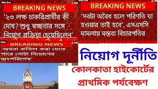 বাতিল হতে পারে সম্পূর্ণ নিয়োগ । হাইকোর্টের প্রাথমিক পর্যবেক্ষণ।নিয়োগ দূর্নীতি মামলা স্পেশাল বেঞ্চে