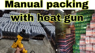 Low cost bottle packing process | LD shrink packing with manual heatgun #sodabottlingplant#packing
