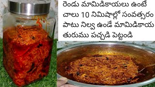 10 నిమిషాల్లో సంవత్సరం పాటు నిల్వ ఉండే మామిడికాయ తురుము పచ్చడి తయారు చేయండి/mamidikaya turumu పచ్చడి