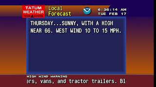 The Tatum conditions are from the local West Texas Mesonet site, located 2 miles SW of Tatum, and