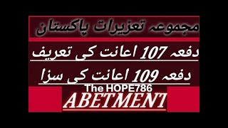 Section 107 to 109 PPC 1860| Abetment & its Punishment| اعانت مجرمانہ| Instigation| Intentional Aids