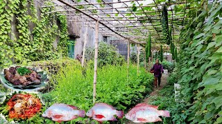 The Peaceful Garden, Harvesting Cooking Vegetable Gardening Raising Chickens and Fish| mother's life