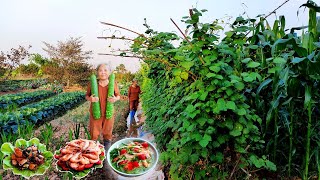 gardening, growing vegetables, harvesting, and cooking elaborate dried shrimp dishes | mother's life