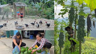 Daily life of a single mother selling pigs, growing vegetables, raising children and building a farm