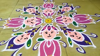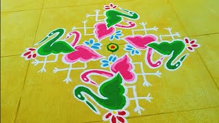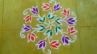 Beautiful Flower 🌹Rangoli designs with dots 7*3-3 #easyrangoli #simplekolam #muggulu #rangoli #kolam