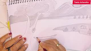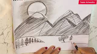 Beautiful Mountain River Scenery Drawing|Easy Pencil Sketch & Drawing For Beginners| Tanis Artworks|