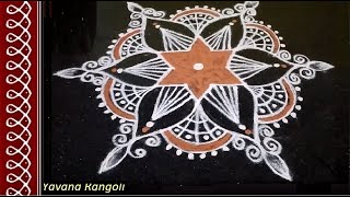 Yavana Rangoli presents creative rangoli designs on a daily basis. The Rangoli designs range from very simple to complex, traditional to trending patterns. You can find a wide variety of Beautiful, Creative and eye catching rangoli designs. The designs are aimed at catering to the daily needs at the doorstep, indoor home decoration and exhaustively during the festivals.