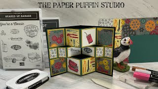Trifold shutter card featuring the Party Puffins