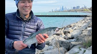 Ice Fishing with No Gear. Catching fish on ice with nothing but an axe and a rod in frozen Michigan.