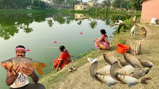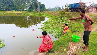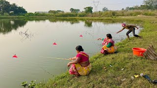 Fishing Video || Traditional Two grandmothers is fishing in the village pond || Amazing hook fishing