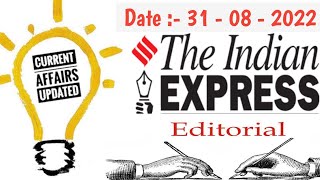 The Indian Express Newspaper !! Editorials Anylasis !! Current Affairs Anylasis !! 31 August 2022 !!