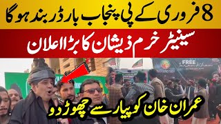 Senator Khurram Zeeshan Big Announcment | KPK vs Punjab Border | 8 Feb 2026 Protest | PTI Today News