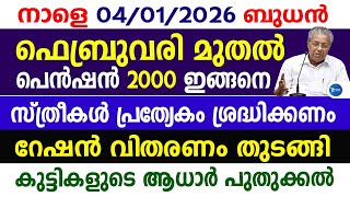 ക്ഷേമപെൻഷൻ 2000 അക്കൗണ്ടിൽ വന്നു|നാളെ വമ്പൻ പ്രഖ്യാപനങ്ങൾ|ആധാർ അറിയിപ്പ്|Kerala news|January Pension