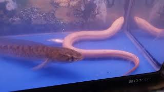 Belut albino babon baru masuk aquarium langsung di serang gabus #belutalbino #belutbabon #belutputih