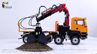 LESU 1/14 8X8 Hydraulic Dumper Truck with Crane Z0063, matched with a 124mm black clam shell bucket.