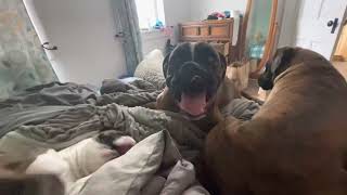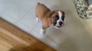 We had bred and raised AKC registered boxers in our home. Penny retired after her 3rd and final emergency c-section. Penny’s daughter, River, (from her 2nd liter) had her opportunity for puppies and only had one…she also retired per advice from the vet.