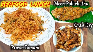 இறால் பிரியாணி மீன் பொலிச்சது நண்டு வருவல் Prawn biryani Meen Pollichathu Nandu Varuval SeaFoodLunch