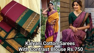 Online Trending Traditional Kalayani Cotton Sarees with Contrast Blouse Rs.750+s| Wholesale & Retail